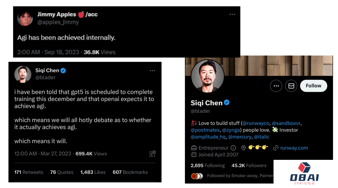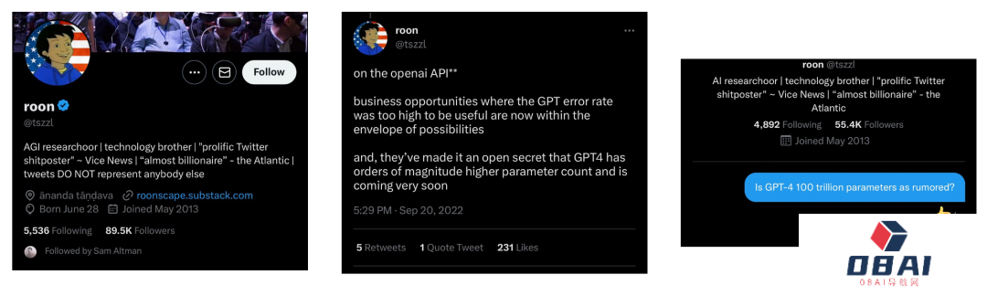 这是一条较弱的证据,但值得一提,因为“roon”作为硅谷AI研究员相当知名,他在Twitter上被OpenAI的首席执行官Sam Altman以及其他OpenAI研究员关注。