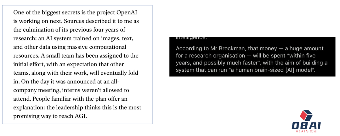 这两个信息源显然都在提到同一个实现AGI的计划——一个与人类大脑大小相当的AI模型,将在“图像、文本和其他数据”上进行训练,计划在2019年之后的五年内完成训练,也就是到2024年。这似乎与我在这份文件中列出的所有其他信息源相吻合...