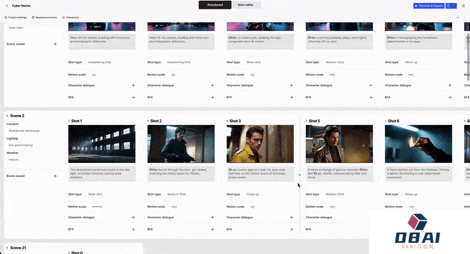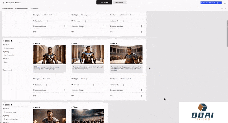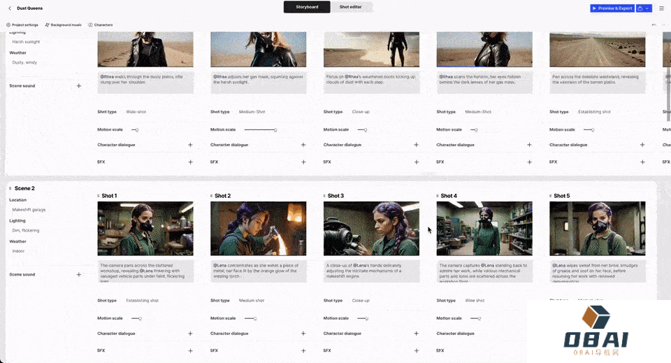 自动生成的故事板,会组织起整个的叙事和场景规划,对角色、摄像机角度都能自定义控制。这种直观的体验,让前期制作和粗剪都更迅速。