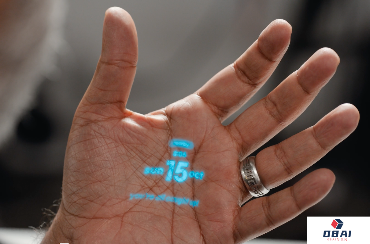 该设备本身不具有屏幕,而是采用投影显示操作界面。可以在手掌心上投射一个分辨率为 720p 的单色 UI 界面,用户可通过语音和手势进行交互。此外,Ai Pin 还带有 2 个呼吸灯,以告知用户是否有来电、短信等内容。该设备主要以语音进行各种交互,基于 GPT-4 的 API 开发。