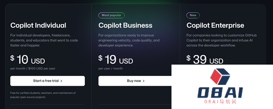 使用地址:https://github.com/features/copilot/plans