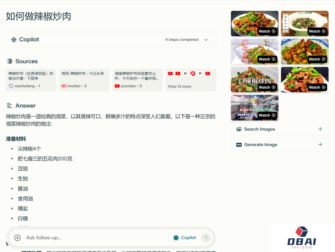 除了热点事件,像菜谱、旅游攻略等等日常生活的常见需求,Perplexity AI也能很好地完成。