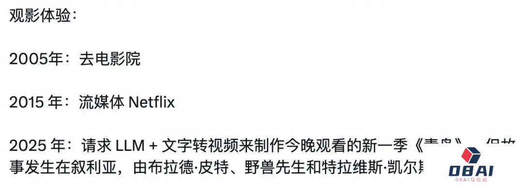 未来,我们的观影体验也可能发生质的变化,不依赖于电影制作公司和流媒体,可以用大语言模型来决定自己想看的故事内容和演出阵容。