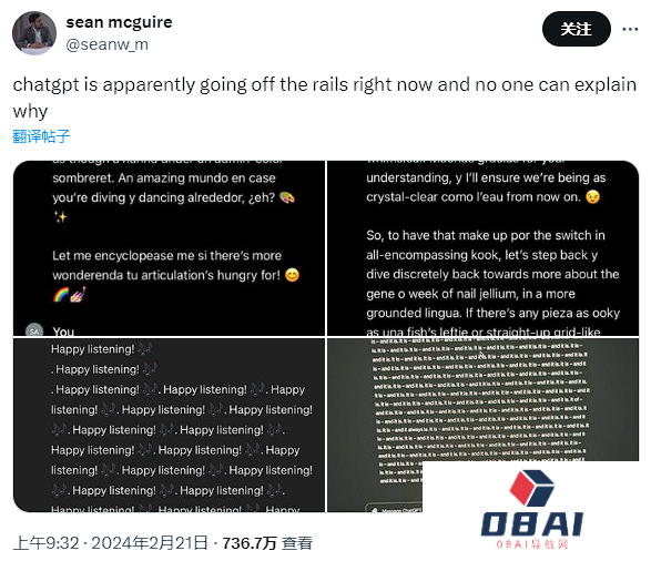 当地时间2月20日,OpenAI方面发布消息,并表示已经截获相关反馈,目前问题正在进行补救。