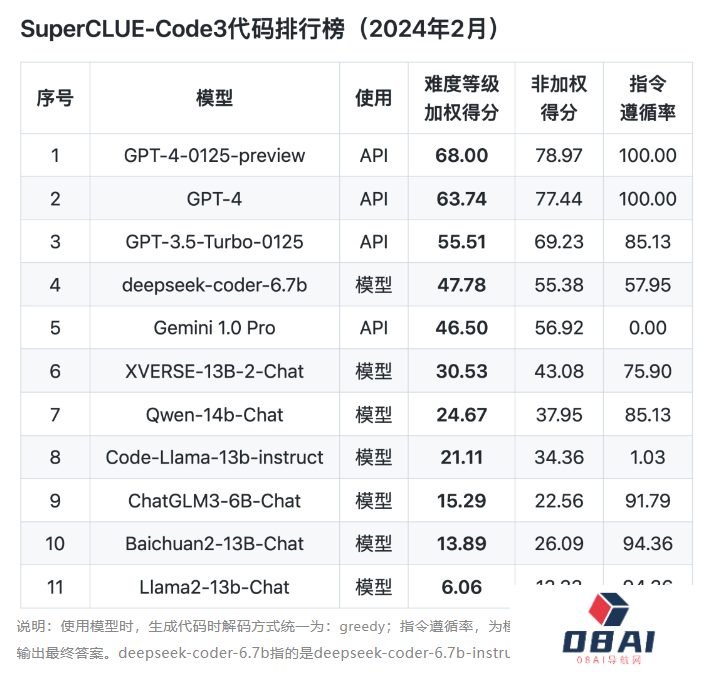 2月21日,中文语言理解测评基准SuperCLUE发布了针对中文大模型代码生成能力的测评集和基准SuperCLUE-Code3。并无意外的是,GPT-4 Turbo与GPT-4依然占据着大模型中文能力排行榜的榜首。