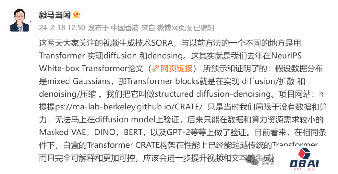 而马毅教授也表示,自己团队去年在NeurIPS一篇论文中也已经证实,用Transformer可以实现diffusion和denosing。