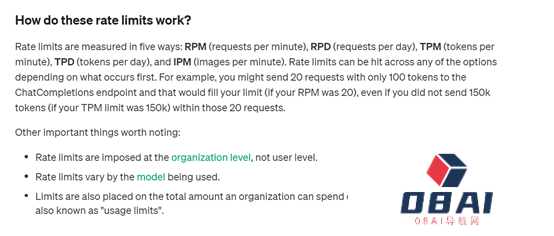通过限制单个用户的请求数量,OpenAI 可以确保大多数人都有机会使用 API,而不会出现速度变慢的情况。