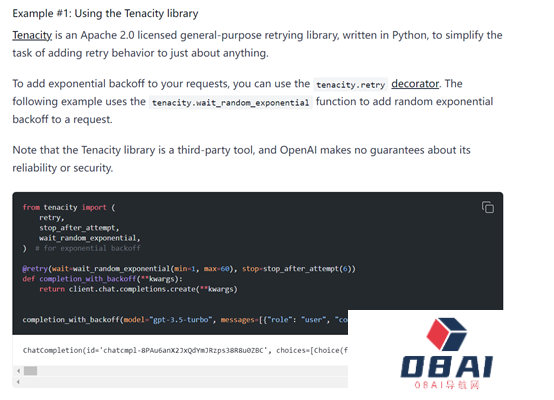 OpenAI表示,最简单的避免速率限制方法,就是使用“指数退避重试”。