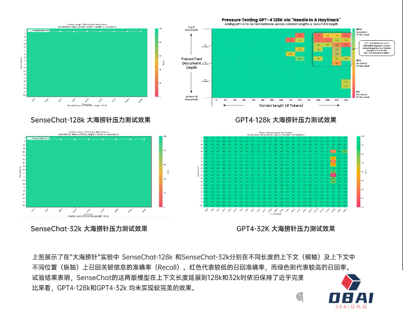 压力性能测试下,128k、32k版本的“召回率”,整体表现超过GPT-4。