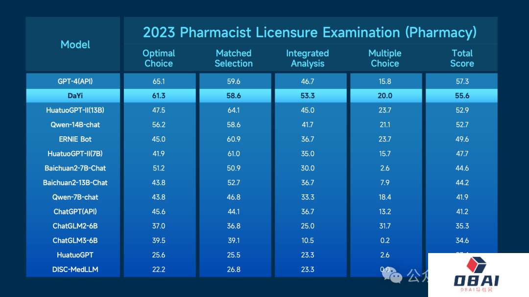 在两项行业权威评测——2023年职业药剂师考试大模型评测和中文医疗大语言模型开放评测平台MedBench中,「大医」均跻身综合评分排名第二,性能接近GPT-4。