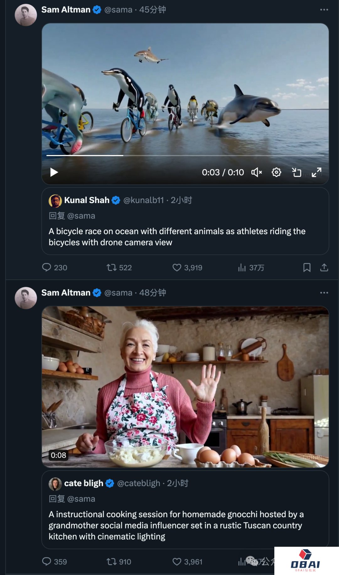带上你的提示词@sama,就有可能收到生成好的视频回复。