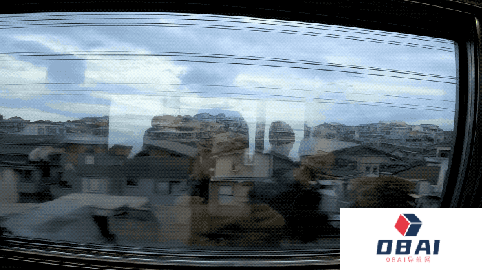 行驶中的列车窗外偶遇遮挡,车内人物倒影短暂出现非常惊艳。