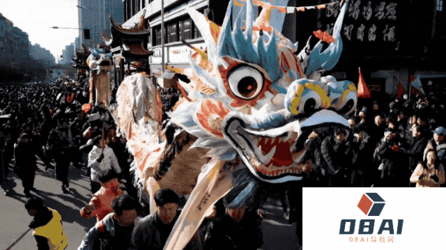 有紧跟舞龙队伍抬头好奇观望的儿童,还有不少人掏出手机边跟边拍,海量人物角色各有各的行为。
