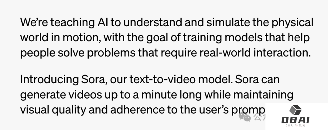 Sora 是能够理解和模拟现实世界的模型的基础,OpenAI相信这一功能将成为实现AGI的重要里程碑。