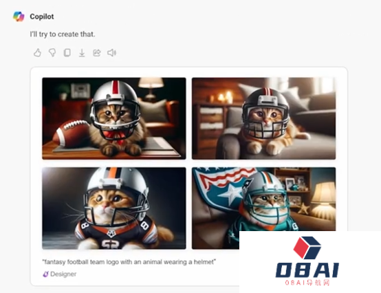 Copilot生成图像可编辑性:例如,为我的梦幻足球队设计一个logo,图像是一只戴头盔的动物。