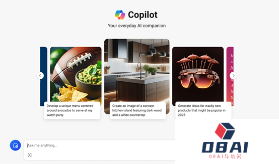 现在的Copilot采用了一种“轮番卡”的效果,用户只需要点击左右按钮就可能快速找到示例。