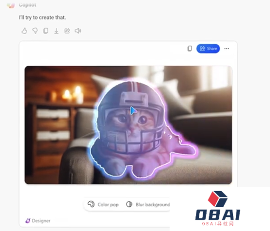 2月8日,微软在官网公布了Copilot的多个新功能,其中,用户借助Designer可对生成的图像进行在线编辑。