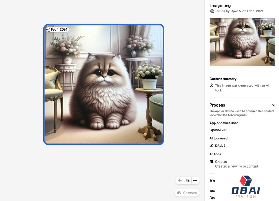 通过API生成的图像将包含一个签名,表明它们是由底层DALL-E 3模型生成的;ChatGPT中生成的图像将包含一个附加清单,表明内容是使用ChatGPT创建的。