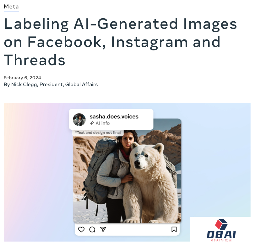 据The Information报道,当地时间2月6日,Meta平台全球事务总裁尼克·克莱格(Nick Clegg)在博客文章中透露,未来几个月内,Meta将为其认为是由AI生成的图片在Facebook、Instagram和Threads等社交平台上打上标签,这些标签将适用于使用谷歌、微软、Adobe、OpenAI、Midjourney等公司的工具制作的AI生成图像。