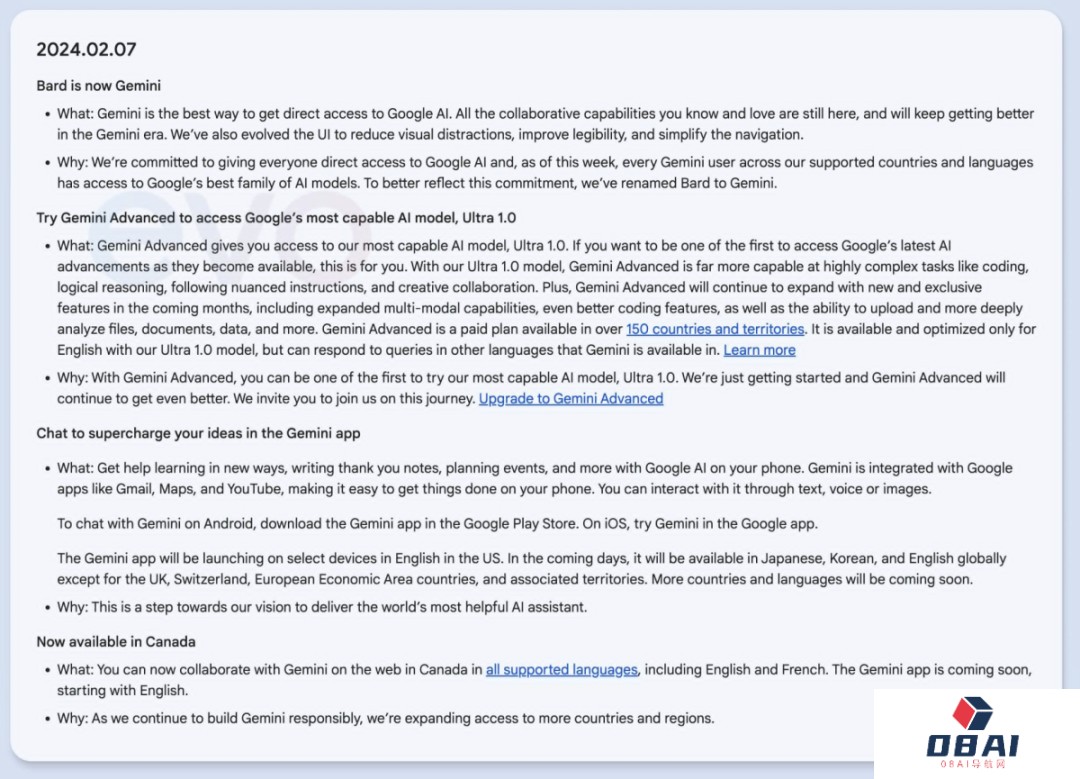 当地时间2月3日,有国外网友爆料,晒出了一张据称是“2月7日”的谷歌Bard聊天机器人的更新日志截图,显示接下来几天谷歌Bard将会做出产品方向调整,针对去年12月推出的Gemini大模型打造更具辨识性的品牌策略。