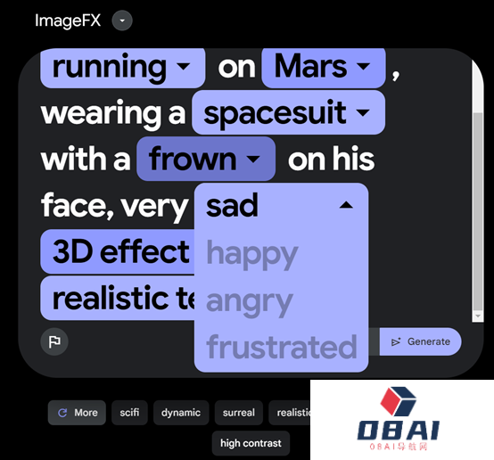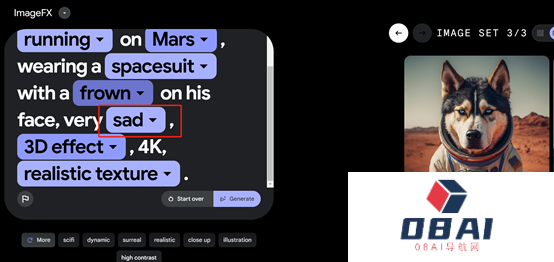 ImageFX比较牛的地方在于,用户可以对所有关键元素的提示词进行选择性修改。