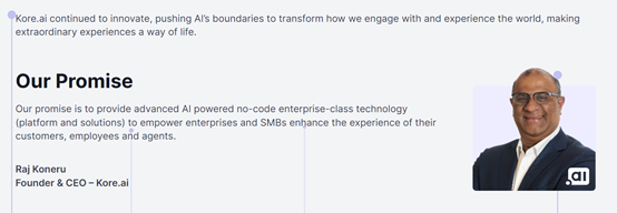最初Kore.ai主要做企业对话式平台,该技术在底层技术上与生成式AI有众多相似之处,这也为其日后开发特定领域的AI助手奠定了坚实的技术基础。