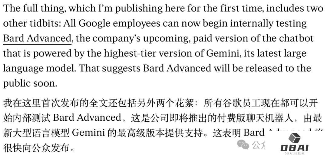 而根据前段时间外媒曝出的内部邮件,搭载Gemini Ultra的Bard Advanced已经全面开放给谷歌员工试用。