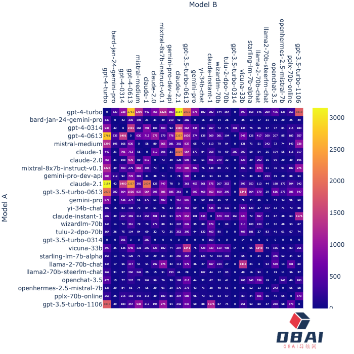 榜单通过类似Moba游戏中的「排位赛」机制,让各家大模型通过PvP的方式来排出性能高低。