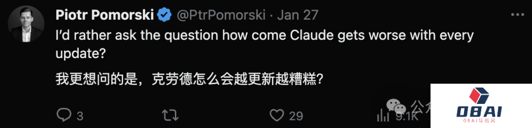 对此,之前有分析认为,Anthropic一直在大力发展的与人类对齐,会严重影响模型的性能。