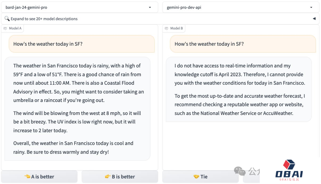 期间,用户会与模型(不知道具体型号)进行互动,并选择他们更喜欢的回答。而这些投票将会决定模型在排行榜上的名次。