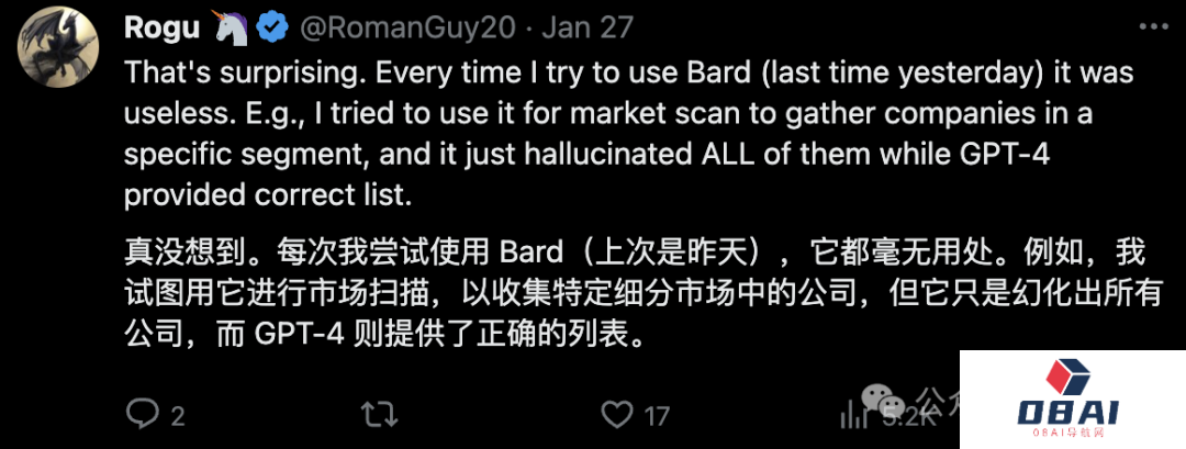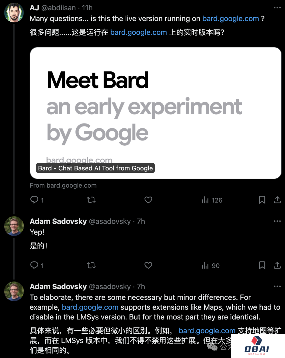 对此,网友提问:现在能够访问的Bard就是这个排名第二的Bard了吗?