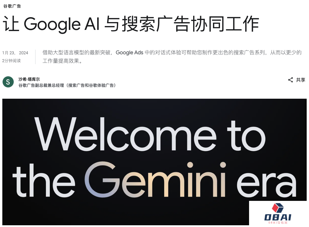 面向企业,谷歌在去年底发布Gemini大模型后,计划将Google AI融合到搜索业务Google Ads。
