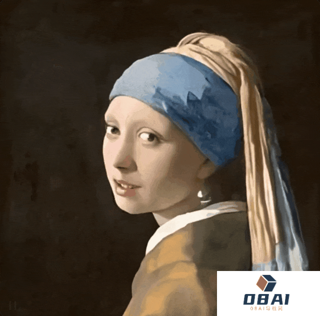 输入提示词「姑娘微笑和眨眼」?,戴珍珠耳环的少女从名画中走出,咧嘴笑了起来。