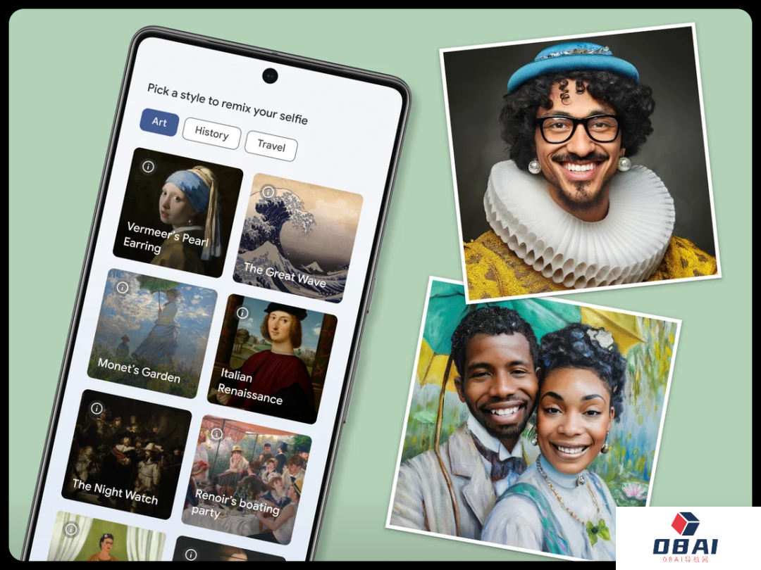 当地时间1月24日,谷歌旗下的相机应用「艺术与文化」(Arts & Culture)宣布推出一款名为「艺术自拍」(Art Selfie)的功能,V2.0版本将首次将生成式AI技术的自拍功能无缝融入到艺术品风格中,用户可以将自己的人像与艺术画作融合创作,带来合二为一的新鲜感。目前「艺术自拍」支持超过25种风格。