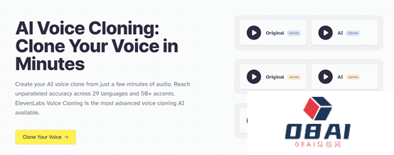 语音克隆:用户提供一段语音片段,将其上传到ElevenLabs平台。就能通过新上传的语音,创建全新的内容,整体模仿效果非常出色。