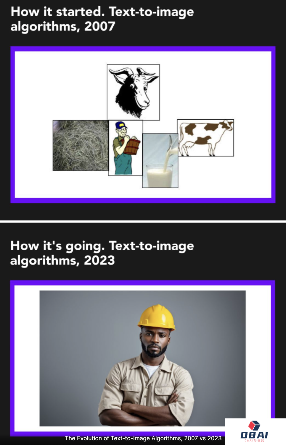 图片生成领域也已今时不同往日,下面是2007年文本-图像生成和2023年的效果对比: