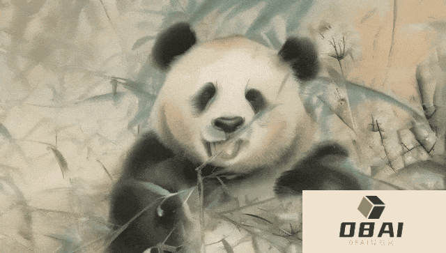 提示:一幅熊猫吃竹子的中国水墨画