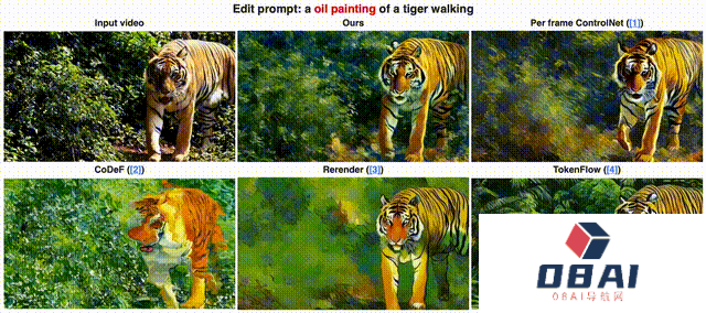 而Rerender经常无法捕捉大动作,比如桨的运动。此外,编辑过的老虎腿的颜色往往会与背景融为一体。