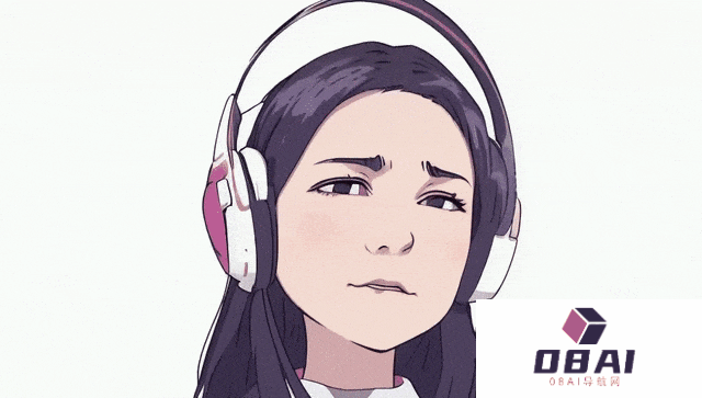 提示:一位戴着耳机的女性,2D动画风格