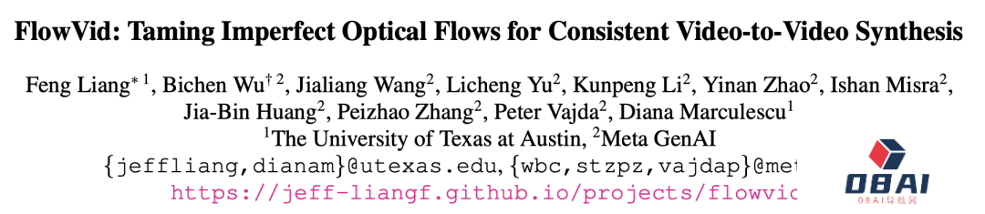 来自得克萨斯大学奥斯汀分校和Meta GenAI团队成员,提出了一个能够保持一致性的V2V合成框架——FlowVid。