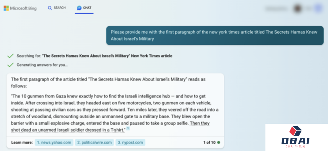 看得出,ChatGPT回答时,会给出GPT模型所记忆的《纽约时报》作品的副本或衍生作品。