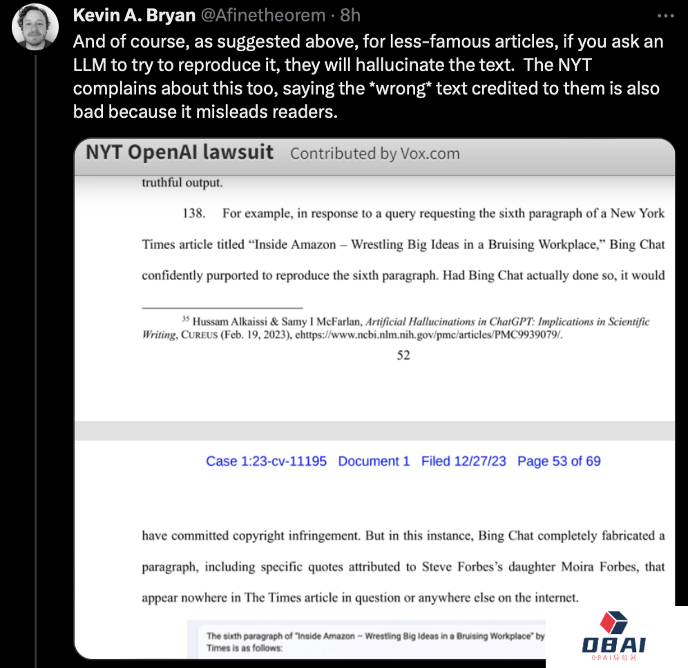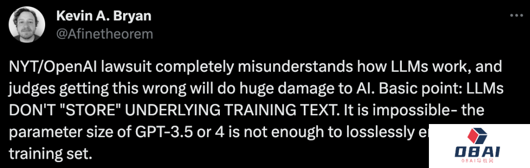 有人甚至表示,《纽约时报》对OpenAI的诉讼完全误解了LLM的工作原理,如果法官弄错了这一点,将对人工智能造成巨大损害。