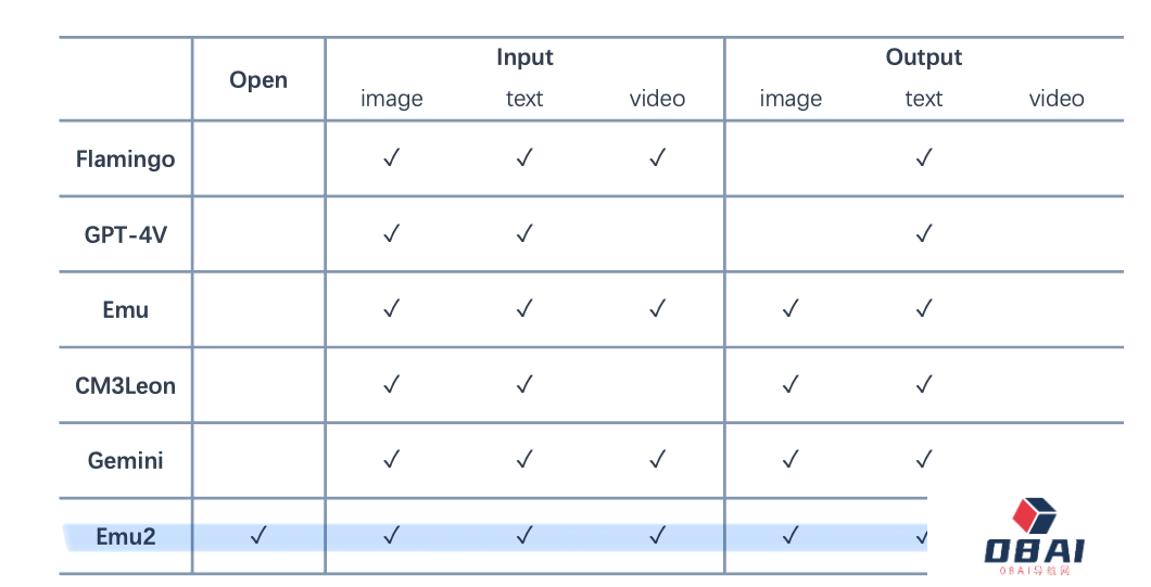 Emu2模型和Flamingo、GPT-4V、Gemini等模型能力对比情况一览