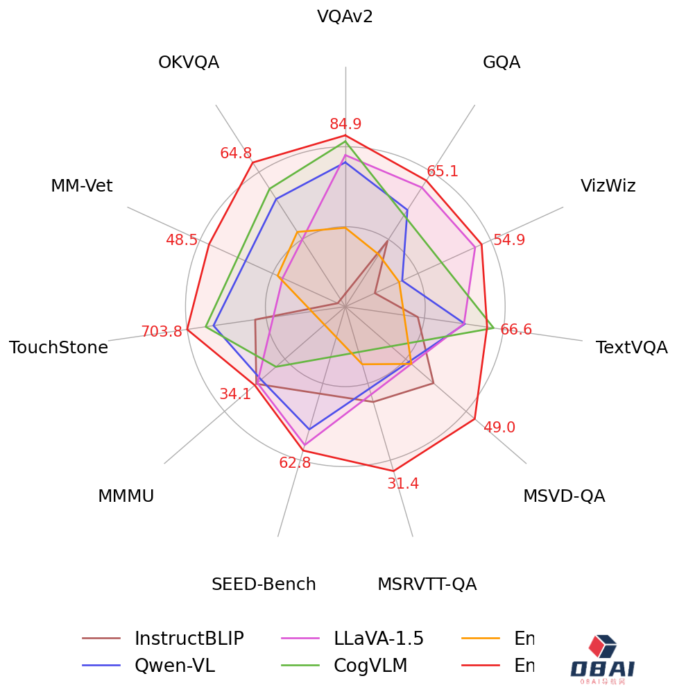 经过指令微调的Emu2可以对图像和视频输入进行自由问答,以统一模型在VQAv2、OKVQA、MSVD、MM-Vet、TouchStone等十余个图像和视频问答评测集上取得最优性能。