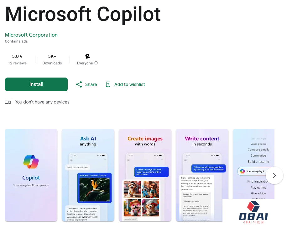 据 The Verge 报道,微软在上周悄然上架了 Android 版本的 AI智能助理 Copilot 应用,目前用户已经可以在 Google Play 商店下载,截止发稿前,下载量已达 5000+ 人次。