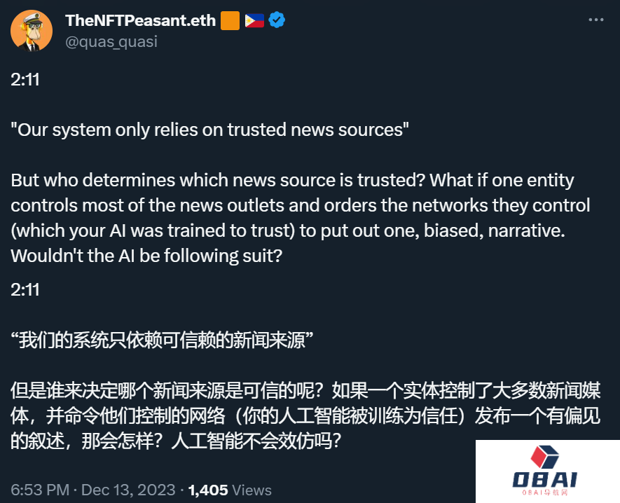 在Channel 1看来,这可以保证他们内容的真实性,但仍然有人质疑是否真的「可信赖」——一个实体公司如何确保AI完全没有偏见?