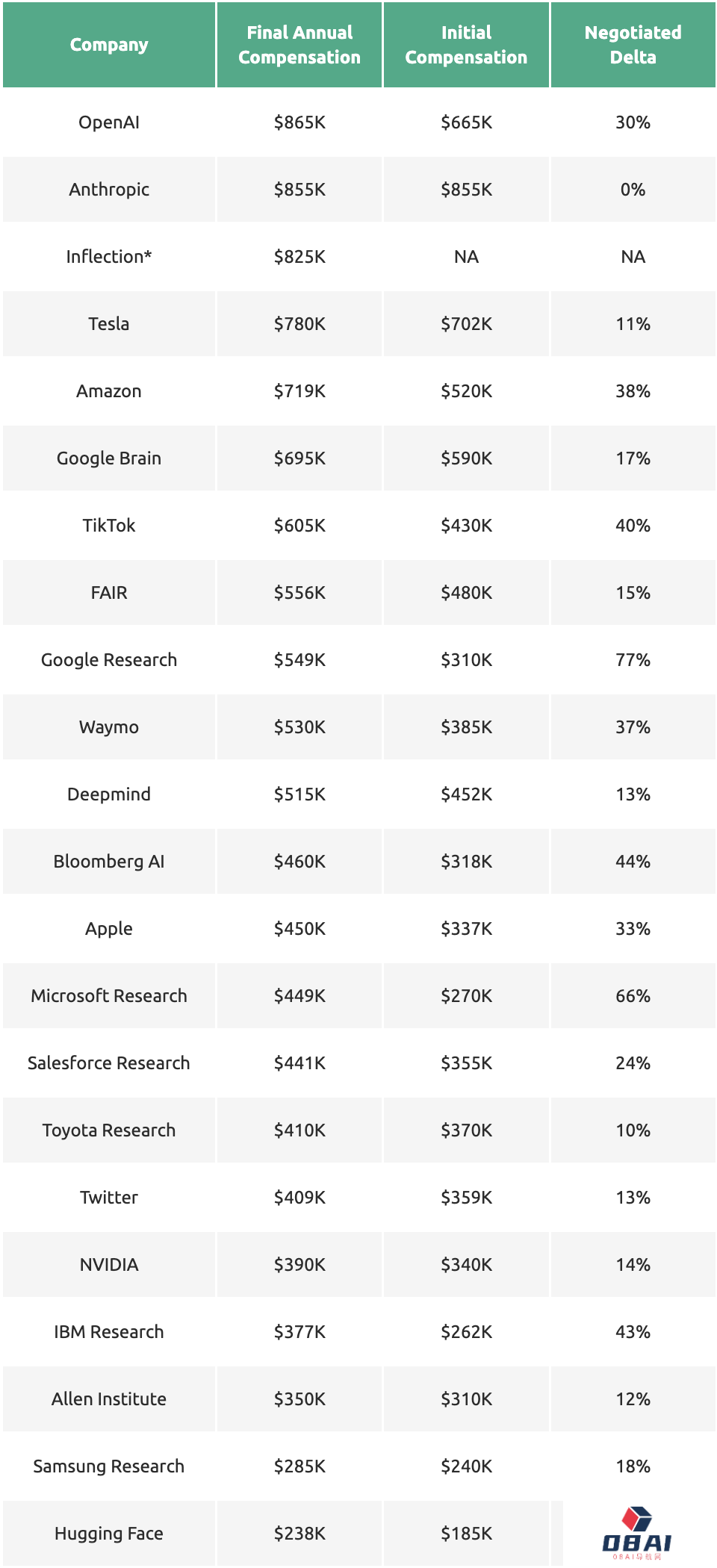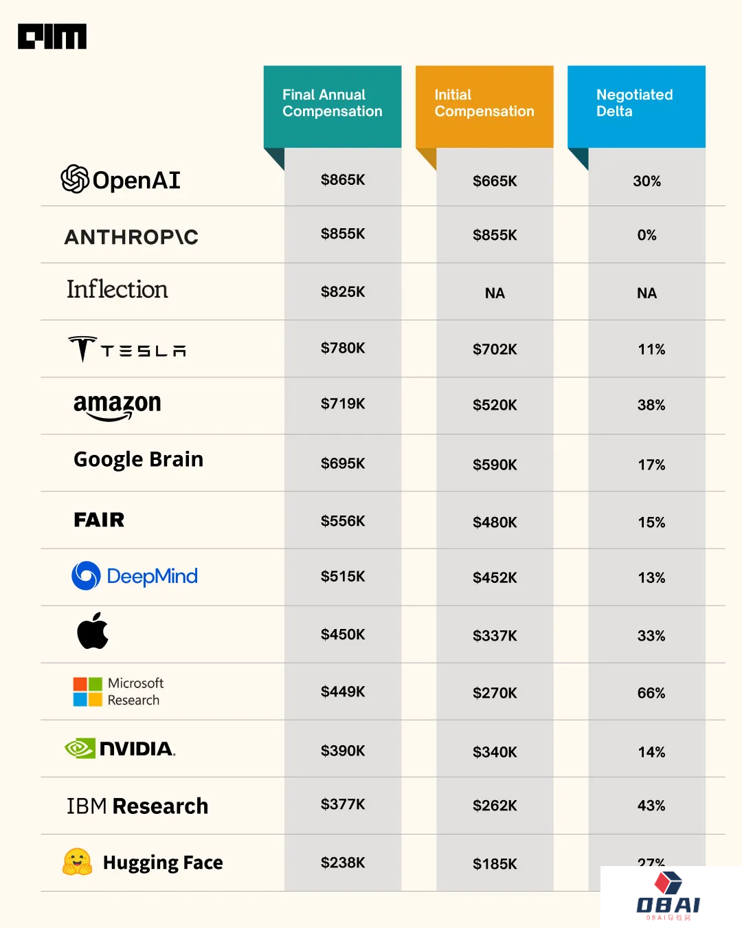 那么,这些头部的AI科技公司的年薪待遇究竟如何?