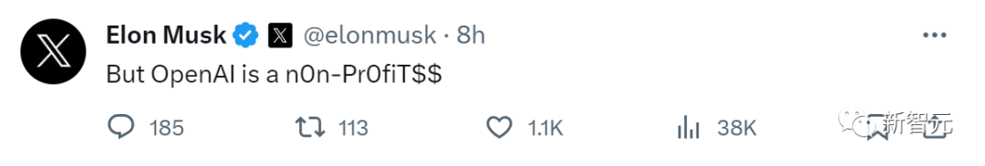 而马斯克则在留言区讽刺道:大家别忘了,OpenAI可是个非盈利机构。