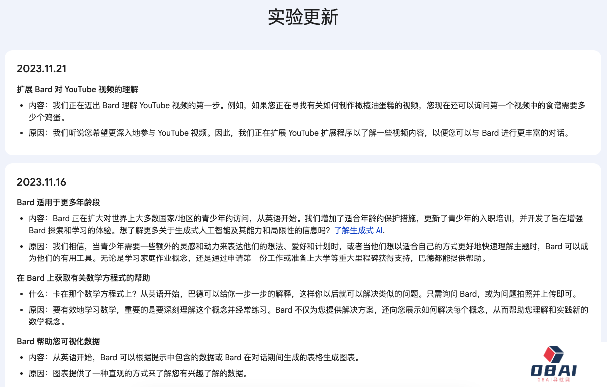 Bard 的更新日志这么表述: