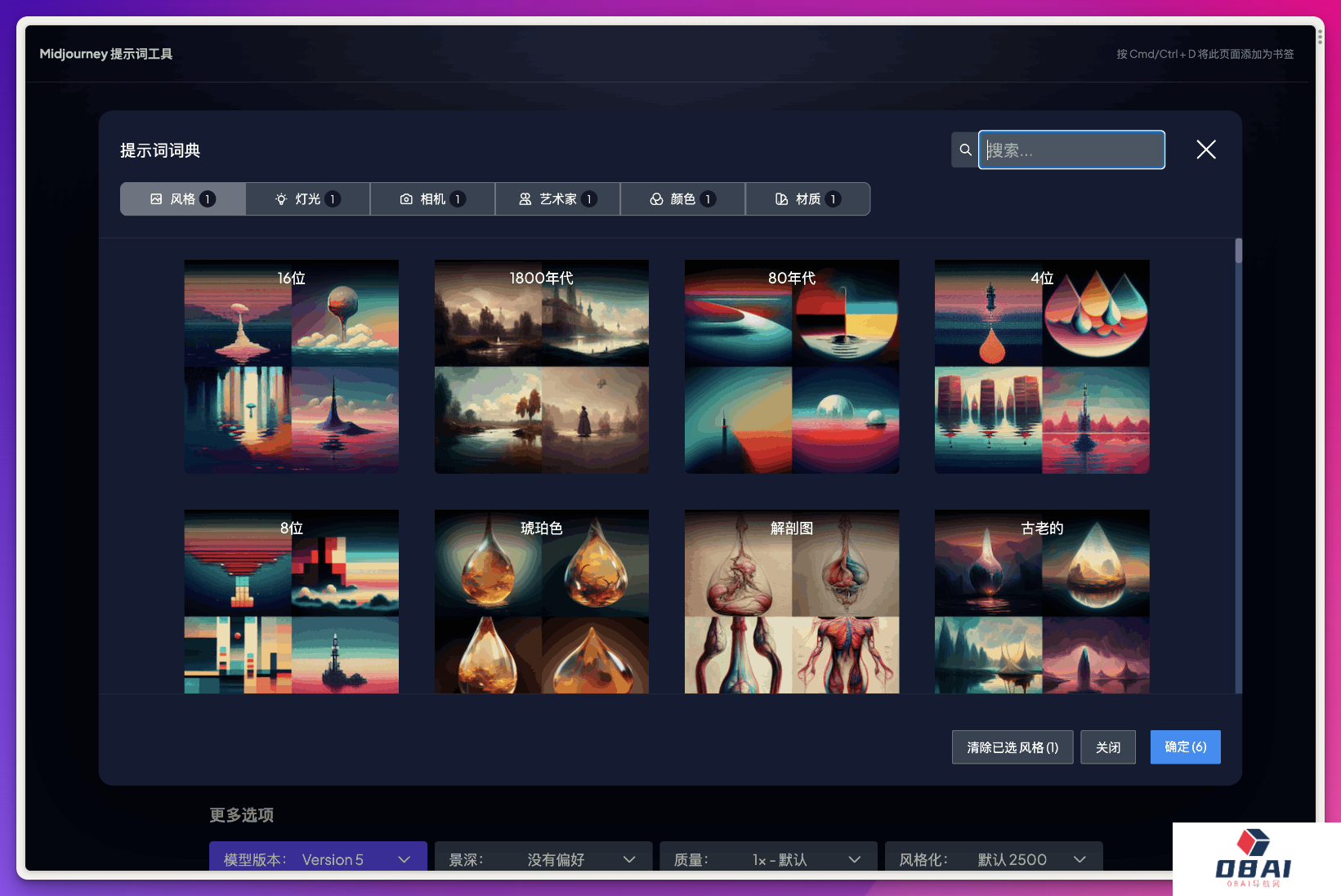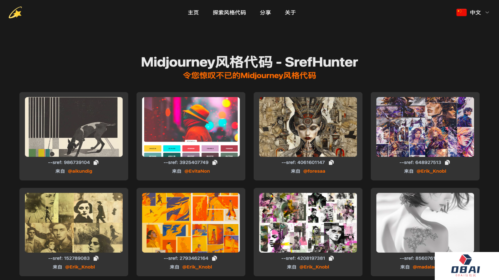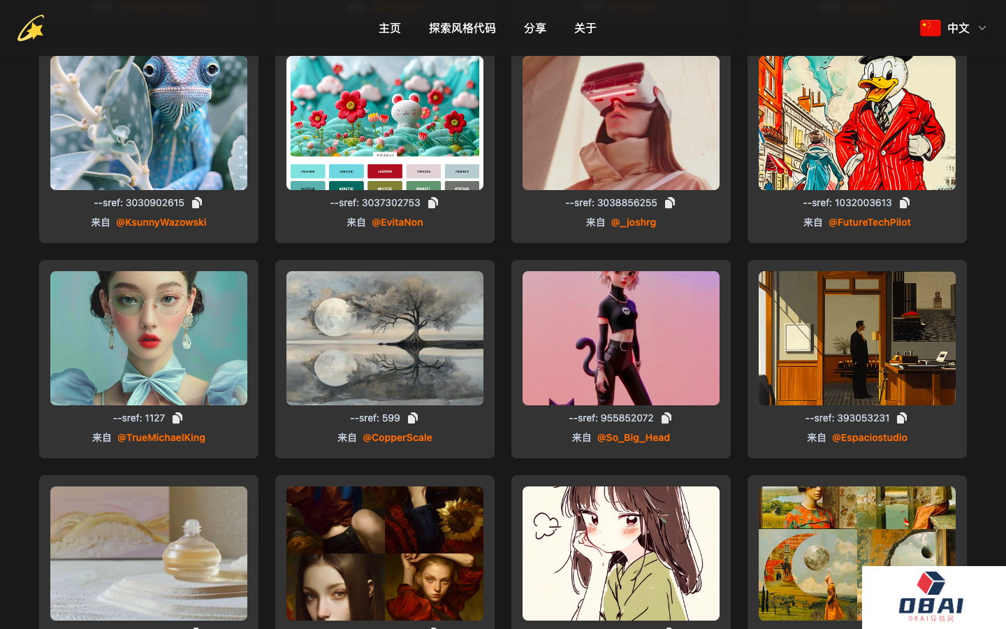 提供大量Midjourney风格代码;